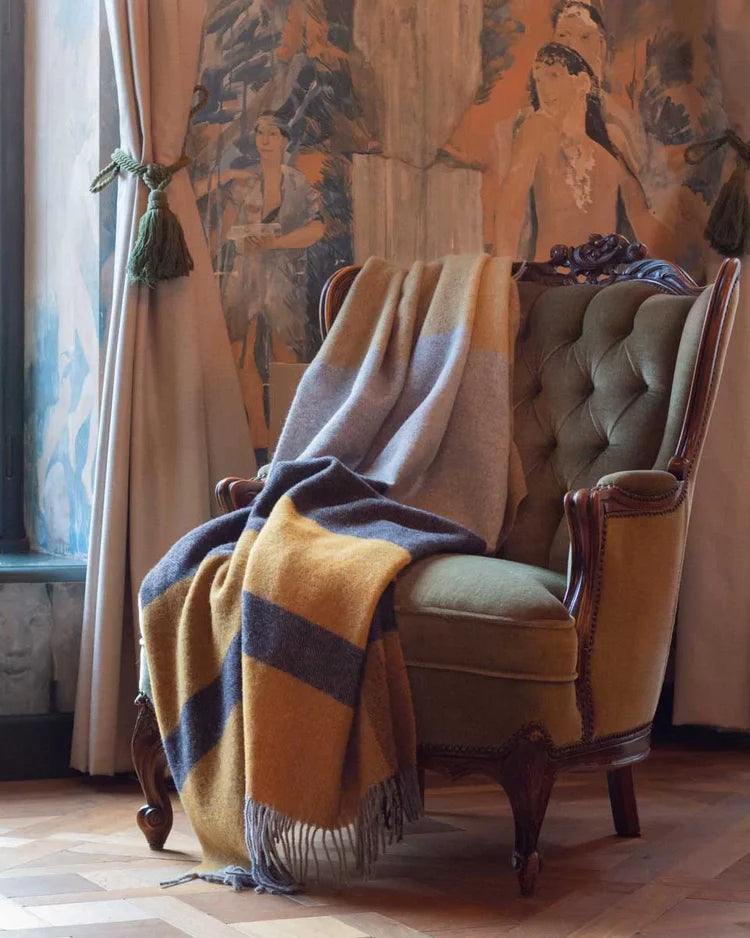 「スローケット」とは、薄手で大判のブランケットです。ひざ掛けとしてはもちろん、体全体を包んであたたまったり、ベッドやソファの上で上から掛けるなど、さまざまなシーンでご利用いただける点が特徴です。スローケットは何世紀も前に、スコットランドから伝わってきました。当時は「タータン」と呼ばれ、各家(または一族)にはそれぞれ独自のデザインがありました。着用者が所属する地域や一族を識別するために、各家のデザインが施されていたのです。スローケットは、人々を寒さから守り、寝ている間に身を包む毛布として使用されていました。