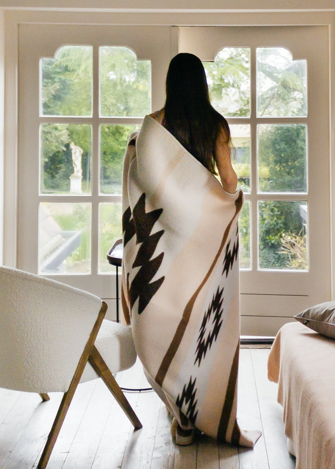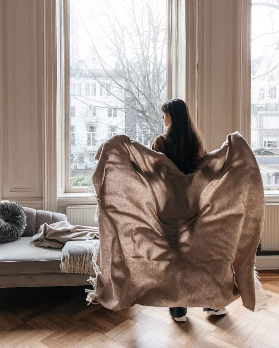 薄くしなやかな織りと、大判ならではの存在感。スローケットは、羽織った瞬間からやさしい温もりに包まれる、上質なウールブランケットです。
